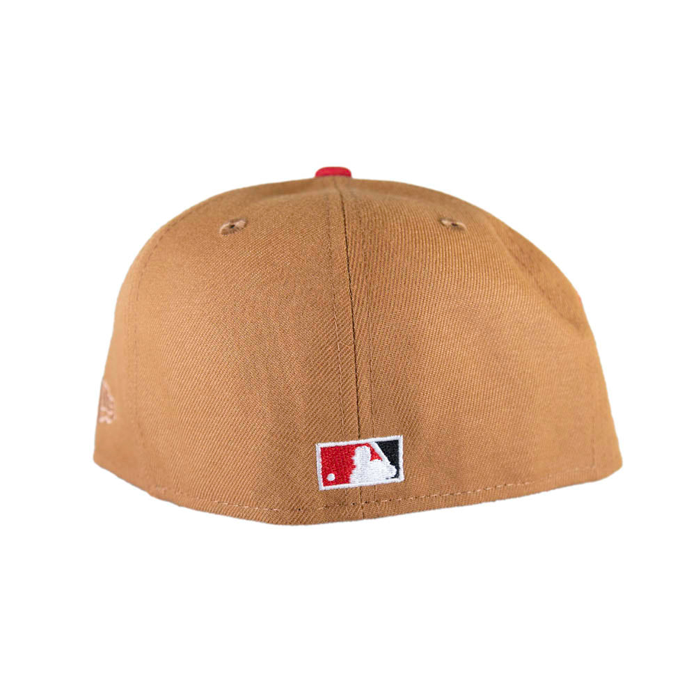 100% Poly 2-Tone Wheat Crown with Scarlet Red Visor