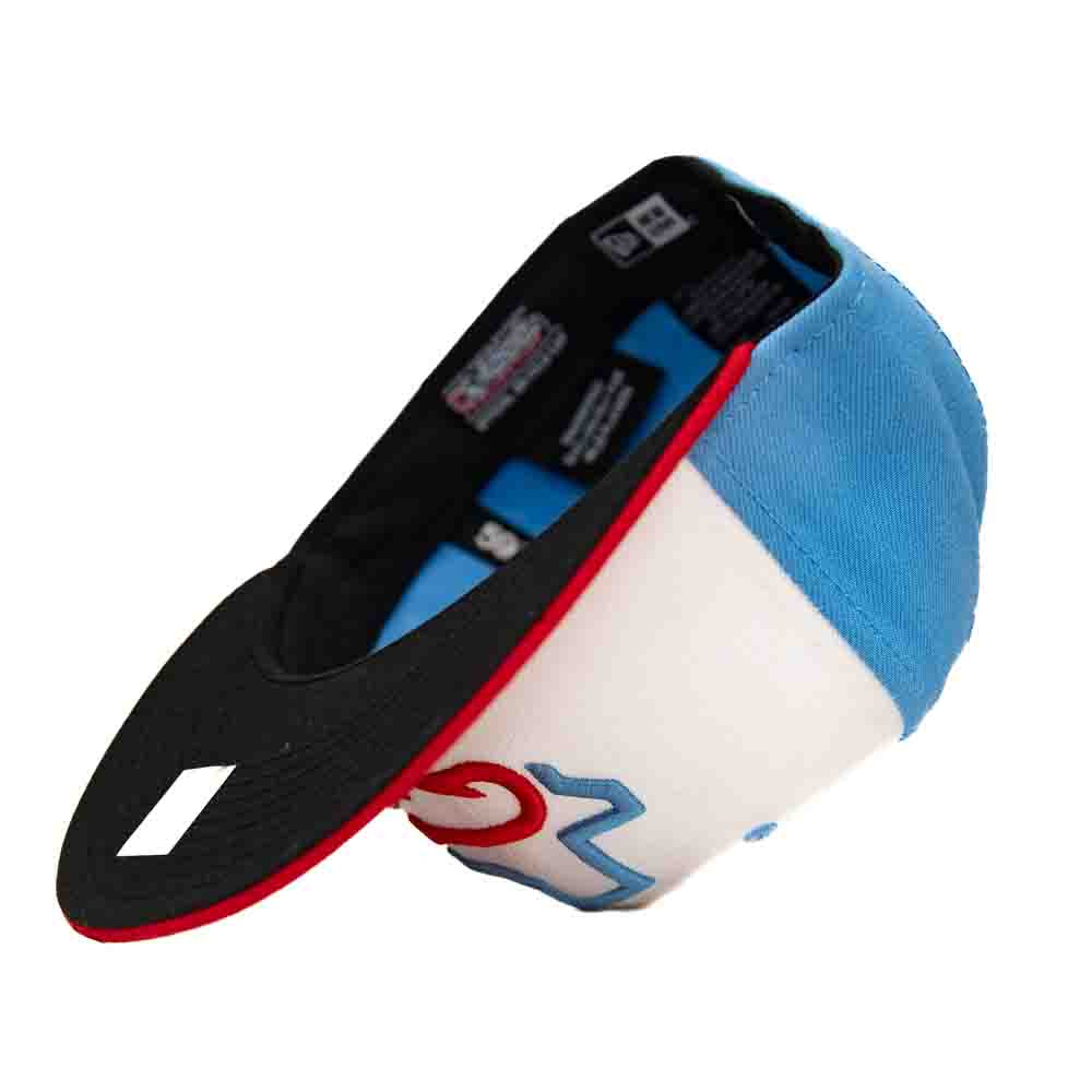100% Poly White and Light Blue Crown with Red Visor